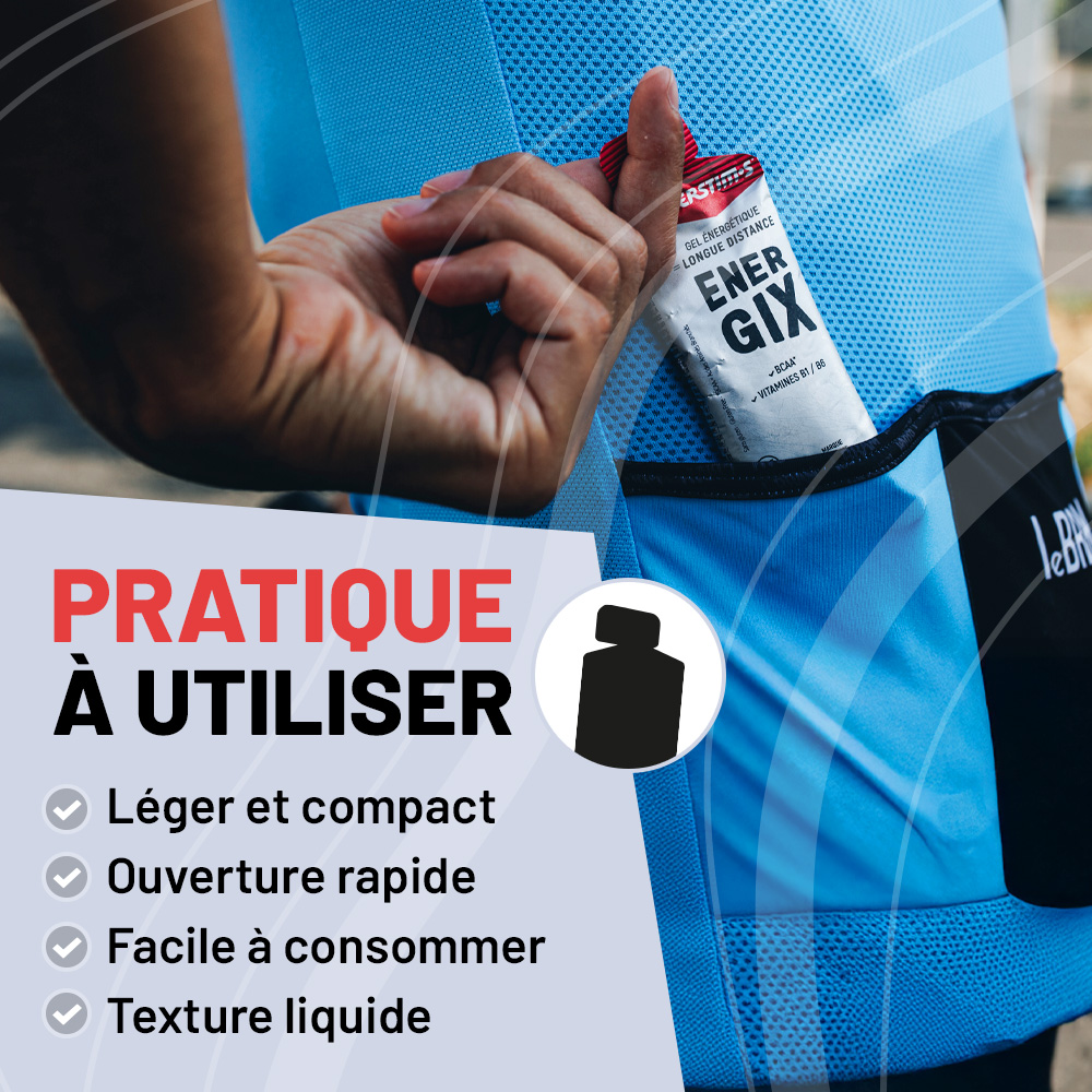 Le gel énergétique ENERGIX est spécialement conçu pour la longue distance. Il apporte une énergie durable lors des pratiques sportives d'endurance telles que le marathon, le trail, le cyclisme, le VTT ou le triathlon.